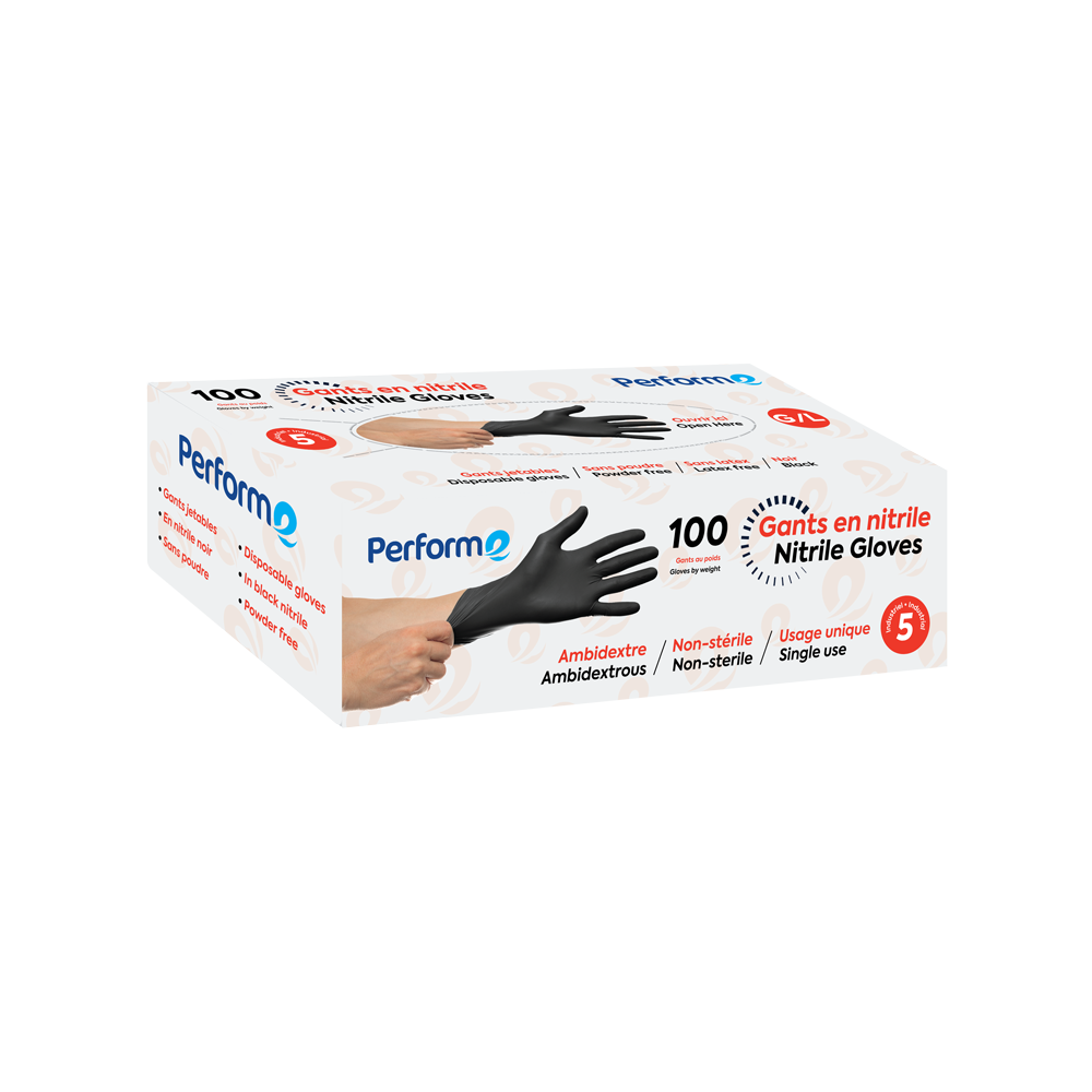 Gants de nitrile jetables noir 5 mil grandeur large. 100 gants par boîte.
